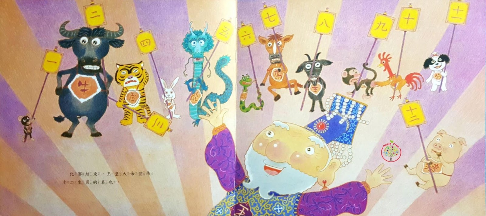 這本編排上很多跨頁的圖畫,畫中充滿了很多細節,每一頁跟每一頁之間圖畫顏色對比很強烈,每翻一頁就覺得眼睛又亮起來,故事內容改編自中國民間故事,把十二生肖的故事重新演繹,回味起來覺得津津有味。